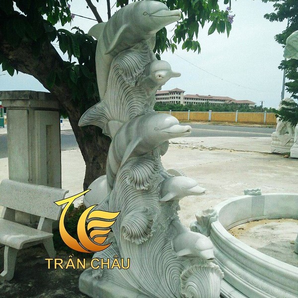 Tượng cá heo điêu khắc rất phù hợp với xu hướng hiện đại,hình tượng chú cá heo đáng yêu, lanh lợi đang tung tăng vươn mình trên những con sóng biển rất đẹp mắt