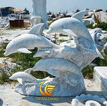 Tượng cá heo điêu khắc rất phù hợp với xu hướng hiện đại,hình tượng chú cá heo đáng yêu, lanh lợi đang tung tăng vươn mình trên những con sóng biển rất đẹp mắt