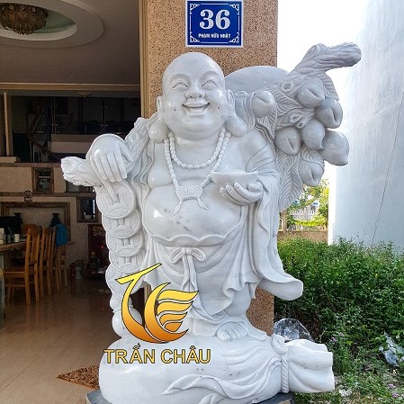 Tượng Phật Di Lặc Đứng Gánh Đào Tiên Bằng Đá Tự Nhiên