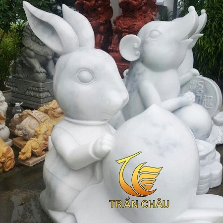 Tượng Thỏ Ôm Trái Đào Đá Tự Nhiên