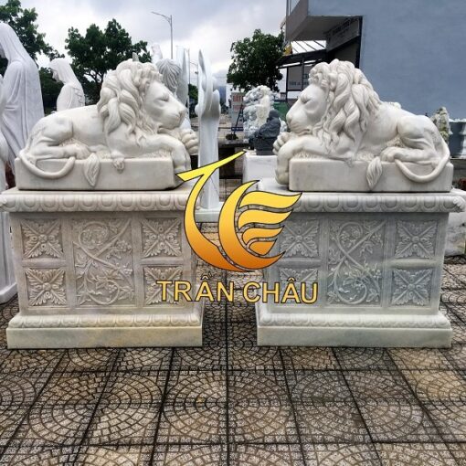 Cặp Tượng Sư Tử Nằm Đá Trắng