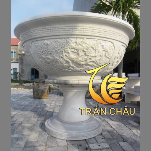 Chậu hoa bằng đá được chế tác với những đường nét tinh xảo hợp thời trang