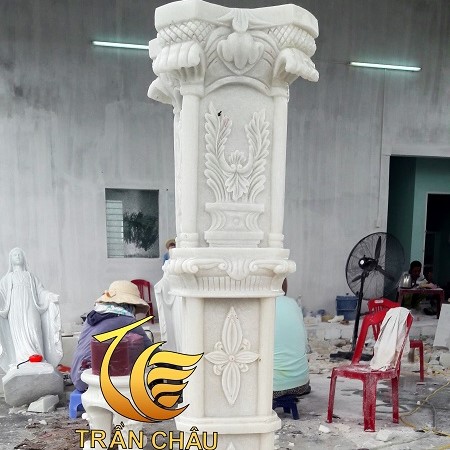 Cột Đá Cẩm Thạch Trắng Chạm Khắc Tinh Xảo