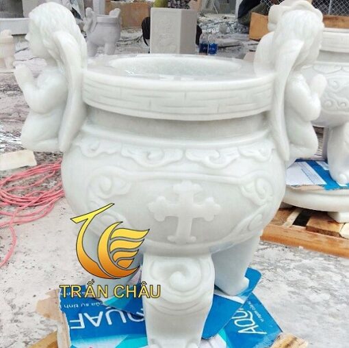 Lư Hương Công Giáo Nhỏ Bằng Đá Trắng Nguyên Khối