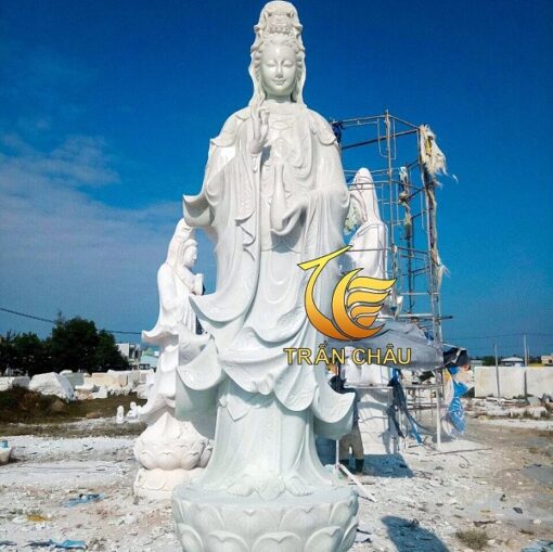 Phật Bà Quan Âm Bằng Đá Đứng Trên Hoa Sen