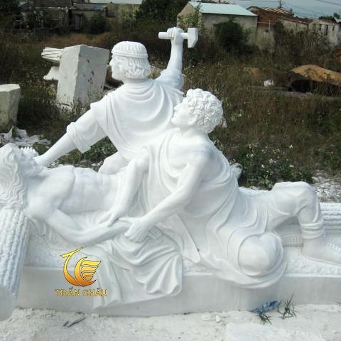Tượng 14 chặng đàng thánh giá đá cẩm thạch trắng nguyên khối.