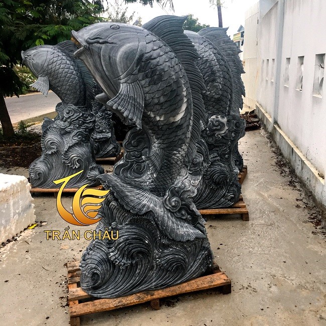 Tượng Cá Chép Phong Thủy Đá Đen Nguyên Khối