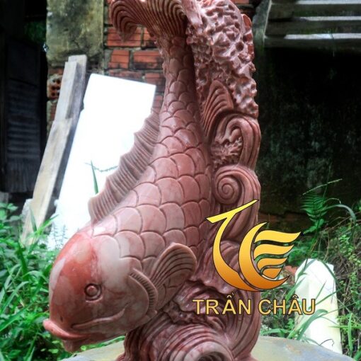 Tượng Cá Chép Trang Trí Hồ Cá Đá Cẩm Thạch Đỏ