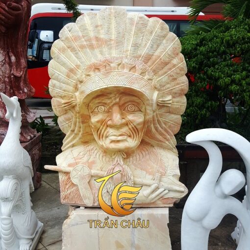 Tượng Chân Dung Người Da Đỏ Đá Cẩm Thạch Nguyên Khối