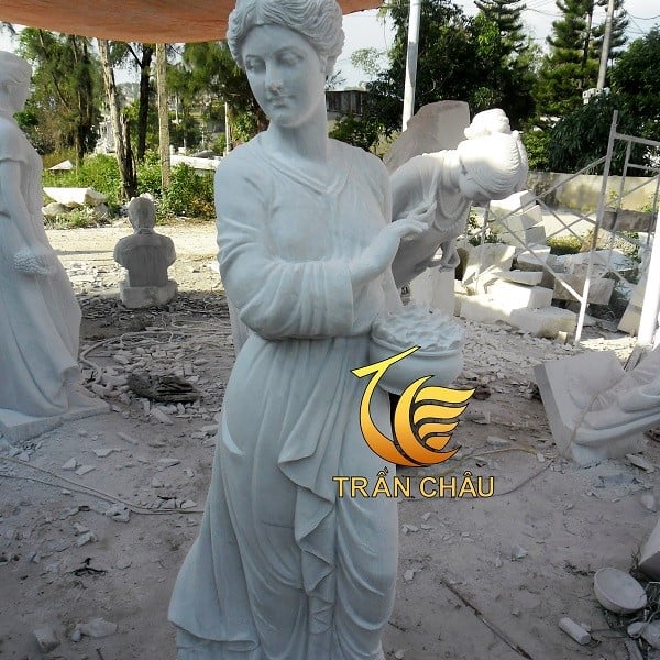 Tượng Cô Gái Vác Vò Đá Tự Nhiên Nguyên Khối