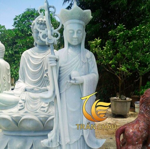 Tượng Địa Tạng Vương bồ tát, tay trái cầm như ý châu tay phải cầm tích trượng có 6 vòng tượng trưng cho lục đạo luân hồi có nghĩa muốn cứu độ hết mọi chúng sinh
