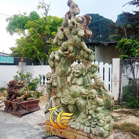 Tượng Phật Di Lặc Đá Xanh Ngồi Gốc Tùng