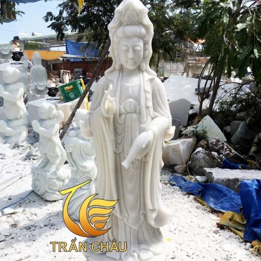 Tượng Phật Quan Âm Trắng Đá Cẩm Thạch