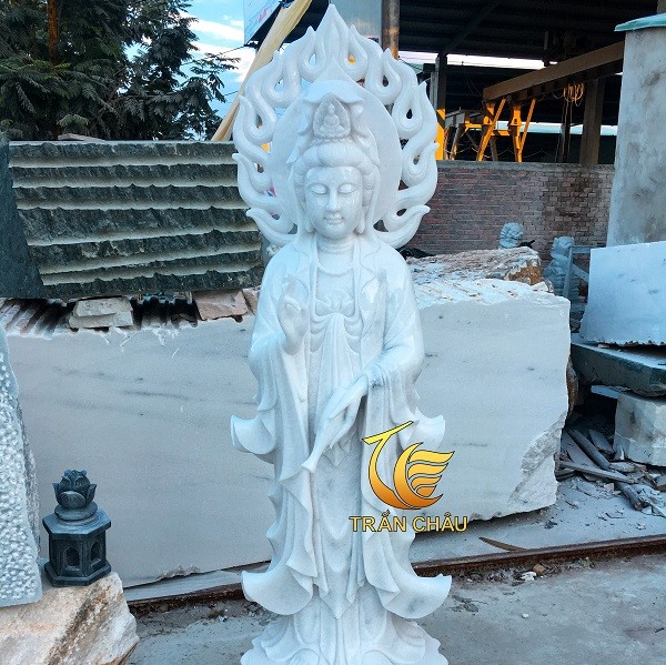 Mẫu Tượng Phật Quan Âm Bằng Đá Trắng Tự Nhiên Nguyên Khối