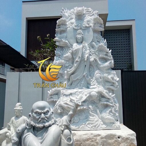 Tượng Phật Quan Âm Trắng Bằng Đá Mỹ Nghệ Non Nước