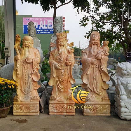 Tượng Phúc Lộc Thọ Đẹp Đá Cẩm Thạch Vàng Tại Đà Nẵng